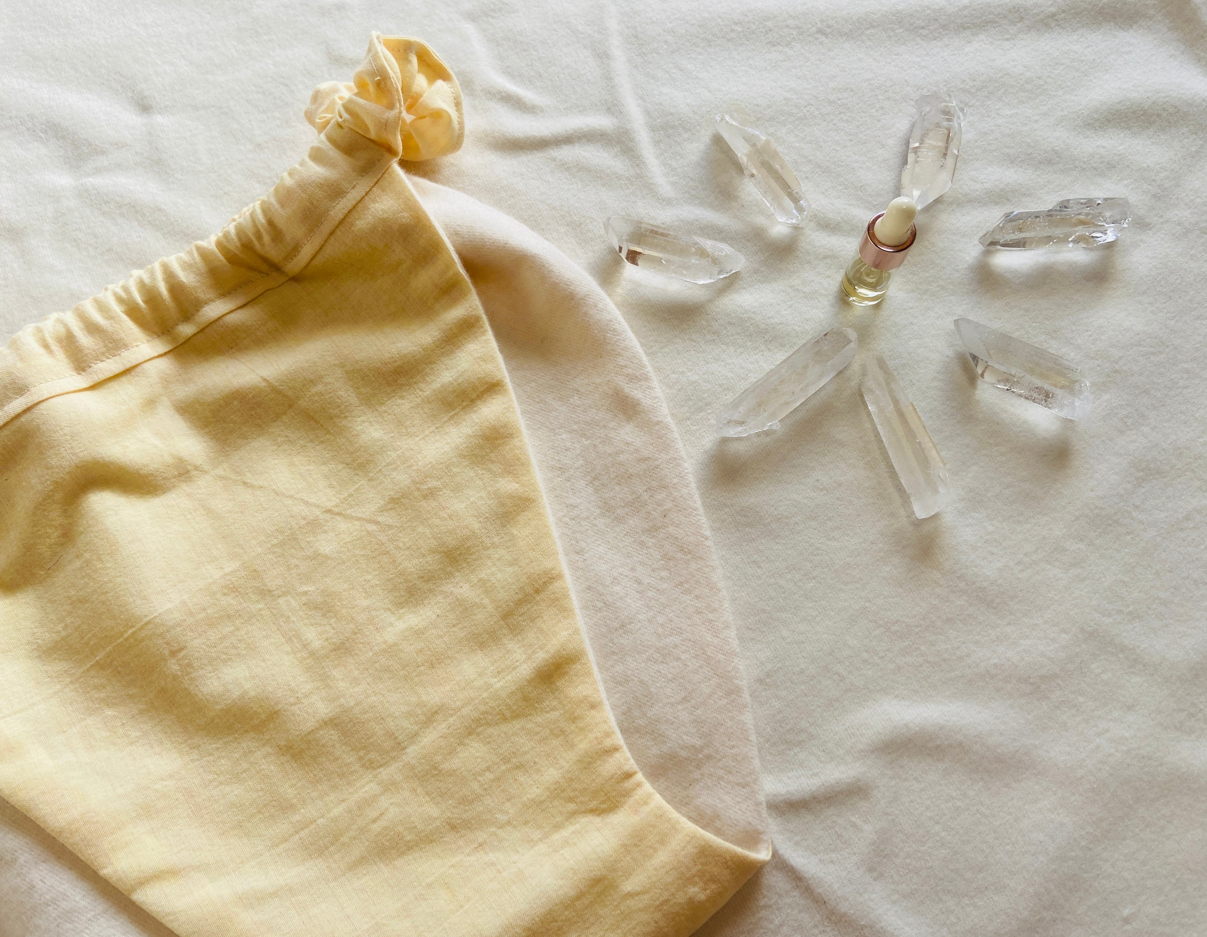 黄色いオーガニックコットン生地を使用したふんどしパンツは、感情を司る第3チャクラの活性化を促してくれるイメージで作りました。